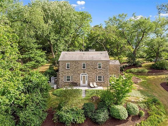 Spectacular stone colonial nestled on a serene, 1 acre lot. Upon entry, you are welcomed into the spacious L/V featuring a floor to ceiling stone fireplace & LG windows allowing for tons of natural light. H/W floors & crown molding lead you into formal DR. Stunning KT boasts a breakfast nook an arched pass-through, custom cabinetry w/ granite counter tops, double oven & gas stove top. A double staircase leading to the upper level a spacious den filled w/natural light & H/W floors. Owners suite w/3 individual closets, French doors to Juliette balcony! Jack & Jill bathroom w/double vanities, soaking tub & glass shower. 2nd bedroom generous sized w/H/W floors, neutral tones, & ample closet space. 2 additional bedrooms w/nice sized closets, a shared bath w/walk-in shower. LL has a family room, a wood burning fireplace, recessed lighting, & a partial bath. Basement level has separate laundry & storage. Relax after a long day on the large tiered side deck overlooking park-like yard.