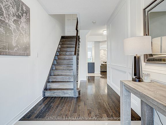 The total package fully renovated TH in Caledon Feat Dbl Wide Driveway grass free Exterior, Interlocking Front, Stunning Backyard, X LInterlocking patio, Privacy Gazebo & Privacy Cedars. Bold black insulated garage Dd & front glass paneled dr. Interior greets you W/Soaring 9' Ceilings, Custom Wall Mouldings, Cali Shtrs, Stone Walls, Hrwd Flrs T-Out. Dr/ Lr Stone Fireplace W/ wood Mantle, Gourmet Kitch W/ Quartz Cntrs, Stone Bck Splsh, Lrg pantry/island Pendant Lighting, Zebra Blinds. Hw Staircase & Flrs To 2nd level w/ custom wall moulding, 3 Bdrms. King Sz Mstr W/ Dream W/I Closet Wall Moulding, Cali Shutrs 4Pc Ensuite. 2nd Flr Laundry W/ Cabinets. Fin Bsmt can be an in law suite feat Den/Office Space Porcelain Flrs, O/C Family Rm Soft Carpeting, Pot Lights, Wet Bar (can be kitchenette) Quartz, Stone & Barn Walls, Newer 3Pc modern Bath, XL 4th Bdrm, can also be used as office, Home Gym Area. Walk to new Southfields community cntr, retail plaza, multi schools, min to Hwy 410 Hwy 10.