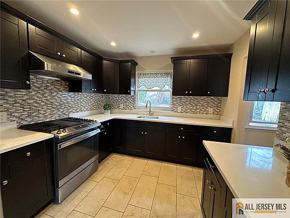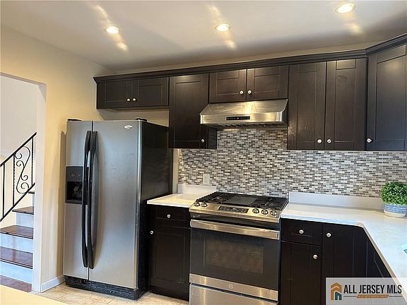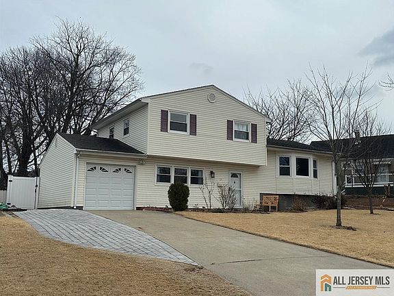 Move-in ready! This stunning split-level home, located in a quiet cul-de-sac, features 4 bedrooms, 2 full bathrooms, and beautiful hardwood floors. A long driveway leads to a one-car garage with a charming brick side path. The first floor includes a family room, a bedroom, and a full bath. Just a few steps up, the living room boasts bay windows and sloped ceilings, which extend into the dining room, illuminated by an elegant chandelier. The contemporary kitchen offers a newly replaced stovetop oven, ample cabinets & counter space, a tiled backsplash, recessed lighting, a Sakura-branded exhaust fan, and a refrigerator included in the sale. Upstairs, the third floor hosts 3 spacious bedrooms with engineered flooring and a full bathroom with tiled walls for easy cleaning. The master bedroom offers abundant natural light and two closets for extra storage. The finished basement is perfect for entertaining, with a corner bar, shelving display cases, and vinyl flooring. Outside, the private backyard features a patio area with outdoor tiles, gravel pathways, and a shed for gardening supplies. Conveniently located near Metro Park and Metuchen Train Stations, bus stops, major highways, and shopping at Menlo Park & Woodbridge Malls. Washer and dryer not included. Join us for an open house on 2/23 from 1-3 PM!