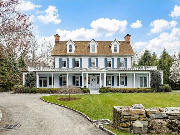 Through a beautiful stone wall, situated on a level, parklike 1.51 acres, on a private cul-de-sac, is this magnificent clapboard Colonial This stately and elegant home was designed by Gardner & Larson and exudes unparalleled quality throughout. Beautiful hardwood floors, double crown moldings and 10 ft. ceilings on the first floor. French doors and walls of windows allow the sun to pour in from every room Welcoming foyer opens to a living room with a woodburning fireplace, French doors leading to a patio and a beautiful library/study... spacious dining room and a fabulous three season room. Kitchen with marble countertops, Wolf stove and Sub-Zero refrigerator, Butler's pantry with extra D/W, wine fridge and large walk-in pantry.