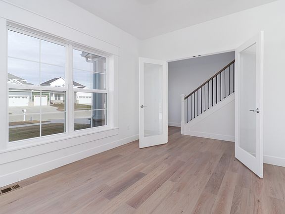 New construction located in Harvest Pointe's latest phase. Stunning 2 story home with 4 bedrooms and 2 1/2 bathrooms. Beautiful white kitchen cabinets, quartz countertops, stainless steel appliance package (stove, microwave, dishwasher). Large walk-in pantry. Beautiful custom built mantel and wide plank laminate wood flooring throughout the main level. Front flex room can be an office or dining room, ect. Back hall drop zone with custom built locker system leading to a 3 car garage. Spacious primary suite with dual sink vanity, shower & large walk-in closet. Rough in for bathroom in the basement. Potential for a rec room, bathroom and bedroom to be finished. Full sod with standard landscaping package. Move in ready. *Agent Interest