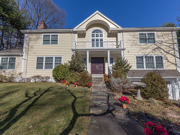 Stunning young Contemporary Colonial on .38 acre located in quiet Fox Meadow neighborhood w/in short, 2 block walk to train, shops & Chase Park. Built in 2003 by respected local builder, Cum Laude Group, & designed by Choura Architecture, this exciting home features a grand entry hall with black & white marble flooring, dramatic double staircases, high ceilings & a sunny, open floor plan. 4238 sq feet of interior space showcases 5 bedrms, 4 full baths & a powder rm. First flr bedrm has private bath plus a den. Amenities incl gas heat, multi-zone HVAC, 2-car attachd garage, radiant heat flooring in kitchen & master bath, gourmet chef kitchen (SubZero refrig, double sink, Wolf range w/double ovens, oversized center island w/granite countertops & white custom cabinetry) and Marvin windows. This home has it all: beautiful curb appeal, versatile & functional interior design, spacious rooms & the most convenient location in town! Stroll to the train & grab your Starbucks coffee on the way.
