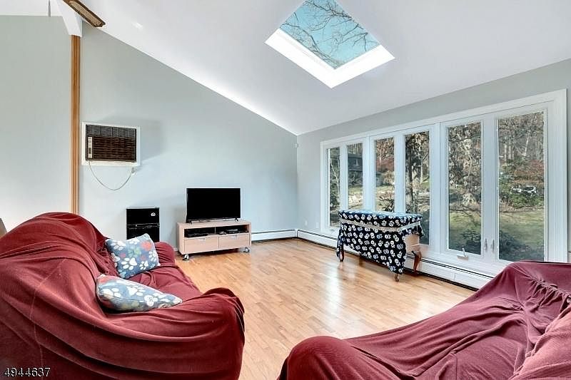 Very desirable quiet street of 11 homes, cul-de-sac in a neighborhood of 150 homes in Bald Eagle Park. Very spacious Bilevel w/cathedral ceiling & skylight in eat-in kitchen, living rm & dining rm.So much light with oversized windows & large Pella sliding doors off kitchen & dining rm to newer composite deck, Overlooks 60x172 lot backing to woods. Very pretty view and private! 3 BR's, main bath & master bath on first flr. Lower level wood burning fireplace in family rm adds warmth, adjacent to den & half bath. Office & heated storage rm, may be possible to convert to 4th BR. One car garage. You will love the size & location of this home. Close to shopping, easy in and out of Ringwood. Bus to NYC! Updates siding/windows/garage dr/deck/roof/front door/10 yrs. Welcome to your new home!