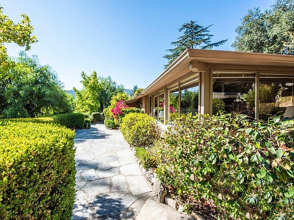 Location, Location, Location Walk to school, village center, shops, wineries, restaurants and community park from the sunny side of the valley. This three bedroom two bath post adobe home is on a private acre that is mostly useable. With terraced landscape; redwood, lemon, orange and olive trees the vibe is Europe meets California. Featuring hardwood flooring, vaulted ceilings this home has loads of charm. With south facing views of the mountains and sunny patios enjoy the indoor/outdoor living that the valleys 265 average days of sunshine allow. Start living your dream now.