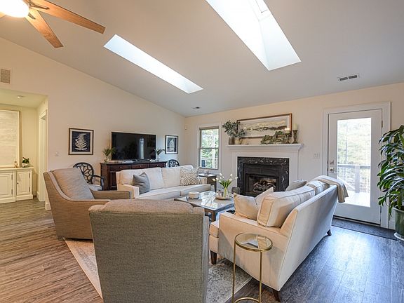 Designer's personal home renovated in 2019 with exquisite finishes. This peaceful over half acre professionally landscaped home in cul-de-sac is ready for you. Relax on the expansive Trex deck with cable railing for fabulous views of the protected woods behind property. Enjoy mountain views from side yard or from inside on built in window seat. Kitchen has new white soft close cabinets and drawers with upgrades. Leathered quartzite countertops and large farm sink. Black stainless gas range with grill and beautiful range hood. Bosch three rack dishwasher with custom cabinet front. Finished with Herringbone Carrara Marble tile backsplash.Open floor plan with skylights and vaulted ceilings in living, master and master bath. Luxury Vinyl Plank floors throughout. New interior doors, trim, baseboards and Schlage hardware.Rinnai Tankless Hot Water, Moen bath fixtures, Seamless glass in shower and barn style glass in hall bath. Ring Security System, doorbells, motion flood lights, and step lights on deck.Luxury spa-like master bath with leathered quartzite counters, double sink vanity with soft close drawers. Shower has large tiles extended to vaulted ceilings with custom shaped Jeld-Wen window and shower seat. Moen fixtures, separate water closet with custom shelves.Home in desired award winning school district. Minutes to Blue Ridge Parkway, shopping and easy access to airport. Area: Arden Unincorporated Area