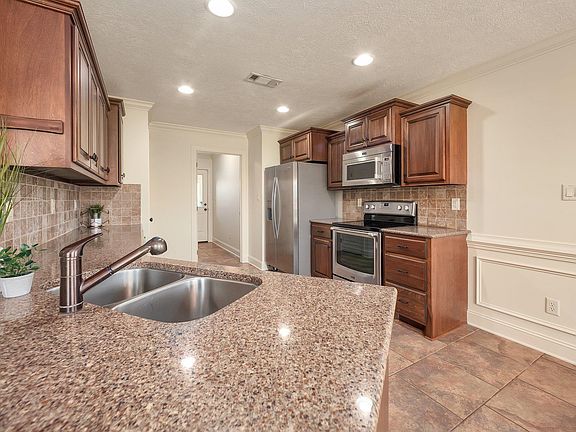 This home is like new- freshly painted and immaculate condition! Split bedroom plan. Nice hardwood flooring. Located in the desirable Traditions neighborhood that is close to North Jackson retail and restaurants. Gas log fireplace and crown molding. Primary bathroom with separate shower and double vanity. Large kitchen with a dining room and eat in kitchen plus newer stainless steel appliances and pantry. Attached side entry two car garage. Nice covered corner back porch. Stainless refrigerator and the washer/ dryer are included.