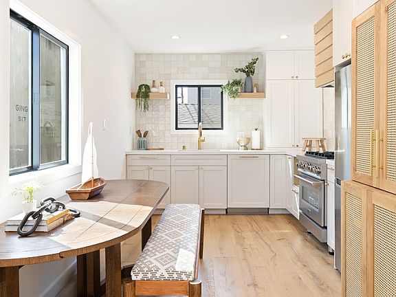 Just in time for Indian Summer! Live in this Bali-inspired gorgeously remodeled luxury two bedroom beach pad! With tons of lights, and seconds from the sand and ocean in Venice Beach, this modern & renovated building is perfectly located near Rose Ave, Abbot Kinney, Main Street and, of course, the beach! No expense was spared on this beautifully reimagined unit. The unit feels spacious with the living room and kitchen open to one another. Enjoy fresh ocean breezes and warm light through the many windows throughout. The kitchen is beautiful and functional with custom kitchen cabinets for plenty of storage, quartz countertops, designer tile and gold Kohler faucet and stylish cabinet hardware. Stainless steel Z-line gas stove, custom oak professional hood, microwave, and dishwasher complete the chef's kitchen. There's also a cleverly hidden in-unit stackable washer/dryer. Each bedroom features a large closet with shelving, ceiling fan, recessed lights, window and window treatments. The bedrooms are separated by a bathroom for additional privacy. The light and bright, remodeled full bath features designer marble tile, shower/tub combo with a deep bathtub, rain shower and a handheld body spray, a window for extra light and ocean air. Gorgeous hardwood engineered, wide-plank floors and recessed lights flow throughout the space. The unit also has a small sitting area off the front door, and it comes with one car parking. An additional reserved parking space can be available for additional cost. Live at the beach in this perfect beach pad! Available furnished or unfurnished for immediate move-in.