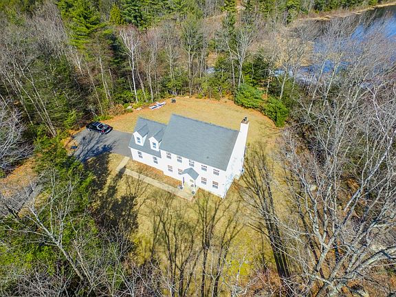 Framed by all types of shade and pine trees, this attractive 2005 colonial on 2.7 acres abutting Buckley Pond ensures that you'll be able to enjoy the modern conveniences of home, with access to all that nature has to offer right in your own backyard. The front door opens into a welcoming tiled entrance area with staircase, and immediate attention is drawn to the warm and relaxed feel of the earth tones of the serene sun-filled living area. Rich hardwood flooring throughout this home contribute to it's character and charm. The living area flows through to the kitchen that includes stainless steel appliances and space for an island and extra seating, and a dining area that allows the cook to easily converse with guests. In the winter, light the fireplace for added coziness, or in the summer the sizable deck extends the home's living space for alfresco dining. The dining room and half bath on this floor easily caters to large gatherings making this home a great one for entertaining. Central air ensures everyone will always be comfortable. Upstairs includes a sunny and cheerful sitting room, the perfect informal and friendly place to relax. The master bedroom, complete with walk-in closet and en suite, plus two additional generous bedrooms and a full bathroom upstairs guarantee that there is enough room for everyone for sleep, play and comfort. With the blend of country living, yet short commute to Hartford, Springfield or Worcester, the ideal balanced lifestyle awaits.