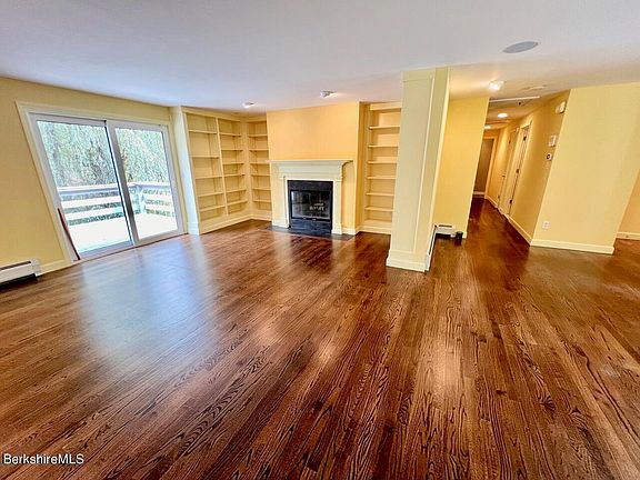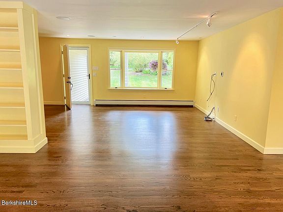 This pristine home wins the ''Trifecta'': WALK TO TOWN, first floor primary suite, and open floor plan ! Beautifully renovated kitchen, new roof, gorgeous hardwood floors on the main level with brand new wall/wall on the lower, walk out level (with 2 BR, full bath, family room and sliders to the yard), a wood burning fireplace in the den with built-ins and sliders to the wrap around deck overlooking the wooded back yard, recently painted interior and attached 2 car garage. Enjoy the low maintenance and convenient setting, close to all that the Berkshires has to offer!