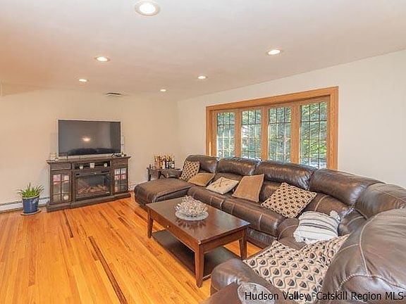 This gorgeous bi-level on a quiet cul-de-sac is updated and move in ready! The gourmet kitchen features granite counter tops, custom wood cabinets, stainless steel appliances and 18" ceramic tile flooring. Loads of light fill the large living room thanks to the custom bay window. You'll also find 3 spacious bedrooms and main bathroom upstairs. The primary bedroom features french doors out to a stunning sun room with vaulted ceilings, bamboo floors and deck access. On the main floor you'll find the family room with stone fireplace with wood burning insert and a full bath. You'll find recessed lighting and beautiful hardwood floors throughout the house. Other features include 2 car garage, level yard and above ground pool. Additional improvements include a new boiler, leach field, kitchen stove, Schedule your showing today!