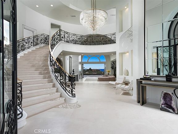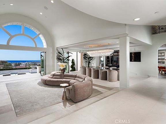 Nestled behind the exclusive gates of Pelican Ridge Estates, 17 Telescope boasts a private lot with dramatic ocean and coastline views. The newly renovated custom estate has been adorned with designer finishes and boasts a near stud down renovation with bespoke transitional finishes. The ~5,916 sqft. 5 bed + 6 bath home invites residents and guests alike with a grand interior with an impressive two-story foyer, spiral floating staircase, and catwalk which accentuate the breathtaking coastline views. The turnkey residence offers exceptional finishes such as glass and iron front door, pre-cast clad exterior, French limestone and French oak floors, slab stone kitchen waterfall island & backsplash, gourmet chef's kitchen with Meile appliances, 8 car “dream” garage wrapped in custom Cleaf cabinetry including commercial grade refrigerator/freezer, custom ventilation & designer lighting throughout, and whole house automation. The true open concept floor-plan is complimented by an open and bright living space on the first floor, made possible by 20 foot soaring ceilings which deliver a sense of occasion; the remainder of the home provides seamless transitions between the living room, family room, gourmet kitchen, and outdoor entertainer’s dream backyard complete with resort style pool and sit down coastline and city light views. The main-floor bedroom provides an ideal retreat for guests, while 4 ensuite bedrooms upstairs, including a luxuriously appointed master suite with exceptional panoramic ocean views, highlight the upper level. The custom estate is rounded out by a rare 2,400 sq. foot 8 car “dream garage” along with immediate proximity to Pelican Hill Resort and their championship golf courses, Crystal Cove Beaches, Orange County’s premier shopping, award winning schools, and resort-style beaches.