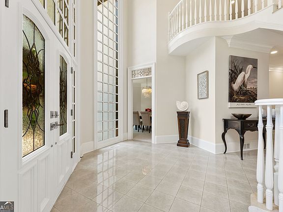 Welcome to Fairway Estates, one of the most prestigious gated enclaves in the heart of horse country. As you approach the stately entrance, you're greeted by twin fountains, towering brickwork, and ornate wrought-iron gates-a breathtaking prelude to the elegance that awaits within. Nestled on 3.99 manicured acres along a private lake, this estate captivates at first glance. A sweeping front lawn rolls down to the water's edge, setting a scene of serenity and grandeur. Beyond the gates, a magnificent carriage house with three-car garage and private studio apartment stands proudly, while the main residence offers an additional three garages-six in total-ideal for a discerning collector. The approach is nothing short of cinematic: flagstone steps ascend to soaring two-story arched windows, hinting at the grandeur within. Step inside, and you are welcomed by a spiraling staircase, gleaming marble floors, and a freshly refreshed interior designed for both intimate gatherings and large-scale entertaining. The formal living room, anchored by a fireplace and full bar, is framed in walls of glass, blurring the line between indoors and out. This space flows effortlessly into a sun-drenched sitting area and expansive kitchen, where sleek new quartz countertops and several prep areas make culinary pursuits a joy. A grand dining room and spacious laundry complete the main living areas. The primary suite is a sanctuary unto itself: an oversized bedroom, private office with spiral stair to an exercise room, dual walk-in closets with built-in safes, and a spa-inspired bathroom. Columns frame a luxurious soaking tub, while a dual-head shower and adjoining spa room with illuminated arched ceiling elevate the experience to resort quality. Upstairs, the residence transforms into an entertainer's paradise. Three ensuite bedrooms, a grand media room, and an impressive sunken pool room with mirrored shelving create endless opportunities for gathering and celebration. Guests enjoy the utmost privacy in the detached studio above the carriage house, while the backyard invites leisure with its resort-style pool, winding flagstone paths, and multiple terraces overlooking the tranquil lake. The potential buyer will be excited to bring their pool designer to make this portion of the property with their own style stamp. This is more than a home-it is a statement of refinement, a retreat of rare beauty, and an entertainer's dream, all within one of the region's most coveted addresses.