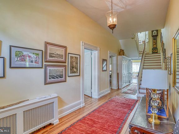 In the words of Delaware Today Magazine: "If you like history as well as waterfront living, The Strand is your place.. The lucky few who live there enjoy a walkable town loaded with historic sites." The Janvier Black house is among the finest private residences in Old New Castle. This early 19th century Federal townhome is truly unique and speaks of location, history and elegance as well as convenience. The sweeping views of the Delaware River from all three floors will captivate you to the point you will not want to leave. There is no need for a vacation home at the beach/shore when you can live on the water all year long. Entering the house you realize the wonderful size and architectural style based on the expansive entrance hall and formal living and dining rooms with King of Prussia marble fireplaces. Continuing through the hall is the kitchen with new backsplash and family room. Outside is a large, mahogany deck overlooking the gardens and water, perfect for entertaining. Downstairs is the old kitchen/tavern which is now used as a media room with wet bar. Proceed up the gorgeous stairway to the second floor that has a bright office and primary bedroom overlooking the water. The primary bedroom features a carved, marble fireplace and a wonderfully updated bathroom with a soaking tub. There is also another large room with built-ins and closets that can be used as a dressing room or a sitting room. Another full bath and the laundry are also located on the first upper level. The third floor has 3 bedrooms, updated bathroom and a viewing area overlooking the gardens and water. Many architectural details are original to the house such as wood floors, light fixtures, mantels, doors, shutters, locks as well as an inventory of early pictures, books and documents that belong to the house. You can access the beautifully landscaped rear yard from the deck of the walk out lower level. The yard is completely fenced in for pets and there is a large, covered brick patio and a storage shed. The current owners have loving maintained this architectural gem! Schedule your appointment today to see all this exceptional home has to offer.