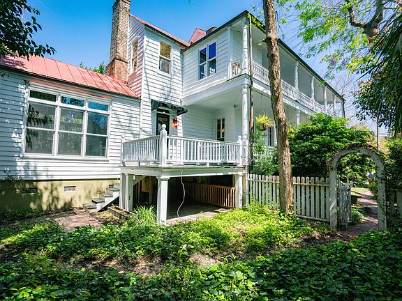 **OFF MARKET TO MAKE REPAIRS**Built in 1830 in traditional Georgian style, this unique 4 bedroom Charleston single home with downstairs apartment boasts a double front porch overlooking a beautiful mature garden. Features a large kitchen, dining room, sun room and living room with hand carved trim and stained glass window. Spacious master bedroom and master bath with walk-in closet and laundry.2nd bedroom has half bath. 3rd floor has exposed heart pine beams, 3rd bedroom and full bath.Lower apartment has separate entrance, full bath and kitchen-- rental or MIL potential.3 separate meters.Large lot with space for 4 cars.Drip irrigation.Central fire and security system.Main floor new HVAC unit 2019.Whole roof seams Sealoflexed and roof paint 2018.
