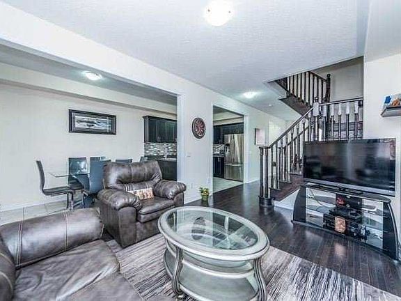 **Beautiful 3 Bedroom Townhouse In High Demand Area**Great Layout **Hardwood Floor In Living,Family And All Bedrooms **Double Staircase For Basement**Upgraded Kitchen With Back Splash**Built In 2015(As Per Mpac)** Access To Rear Double Car Garage From House **Large Master Bedroom With W/I Closet And Bath** Well Kept**