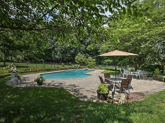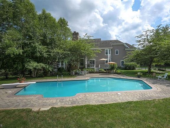 TEWKSBURY TOWNSHIP, Spectacular Custom-Built Brick-Accented Colonial at Highland Farms cul de sac. This lush property offers two level acres of land enhanced by open grounds and flowering trees, spacious rear deck and resort-style pool surrounded by paver patio. Built in 2000, the updated floor plan presents five bedrooms, three full baths and 2 powder rms. Glistening hardwood floors, custom millwork, 9-foot ceilings on both levels, numerous window walls, floor-to-ceiling stone fireplace fam rm, conservatory w window walls, gourmet center isle kitch w maple cabinetry, granite countertops, ceramic tile backsplash, private den with built-ins, master bedroom adjoins an opulent master bath featuring jetted tub. Lower Lvl offers media, game, exercise and home office and climate-controlled wine cellar. 3 car garage
