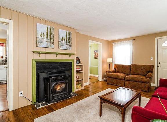 Very warm inviting home with a nice layout and updated Kitchen and Bath. Deck has been redone with pressure treated decking and Trex cap rail. Newer roof, windows, appliances. Bath has a nice large tub with generous recessed shelving area. Brand new heating system installed in November. Pellet stove fits nicely into the fireplace and does not take space from the Living Room. This is a sweet, energy efficient home on a quiet street with a large flat yard and oversized two car garage.