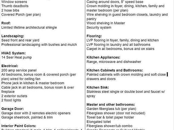 Fantastic NEW CONSTRUCTION*Ranch w/ Bonus*NEW SUBDIVISION in McGees Crossroads Area w/ Large Lots Mins from I-40*Open concept floor plan w/ large Family Rm*Spacious Kit w/ Granite Tops, Tile Backsplash, Cabinets w/ Soft Close, Pantry & SSApps*LVP Flooring Thourghout Main Living Areas*1st floor Master Suite Features Trey Ceiling, Dual Vanity,Sep Shower, Garden Tub, His &Hers WIC*Spacious Secondary Bedrms*Bonus Rm*Covered Rear Porch*Security System*Extra Trim Throughout*