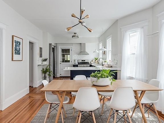 Perched on the top floor of a quintessential Cambridgeport triple decker, this beautifully re-imagined 2-bedroom/1-bath condo is illuminated with natural light and features high ceilings, tree-top views, and a spacious and quiet rear deck. The new kitchen is outfitted with custom cabinets, quartz counters, stainless appliances, and a vented gas range. The ample peninsula seamlessly connects the chef's kitchen to the dining room. Additional amenities include a full sized (vented) washer/dryer, ample in-unit storage, and dedicated storage in the basement. Situated on Tufts Street, coveted for its wide and tree-lined appeal, this home is both centrally located and peacefully residential. Easy walk to Central Square, Kendall, MBTA Red and Green lines, MIT, Whole Foods, Trader Joe's, and The Morse School. Commutes to Cambridge, BU, downtown and Greater Boston are a breeze via bus, subway, bike paths, Memorial Drive and Mass Pike. A run on the Charles River, and parks are just steps away.