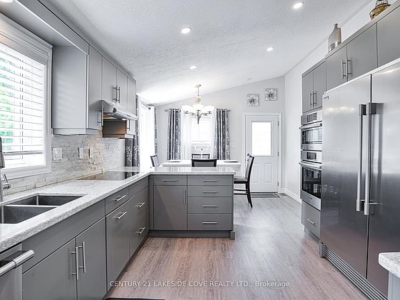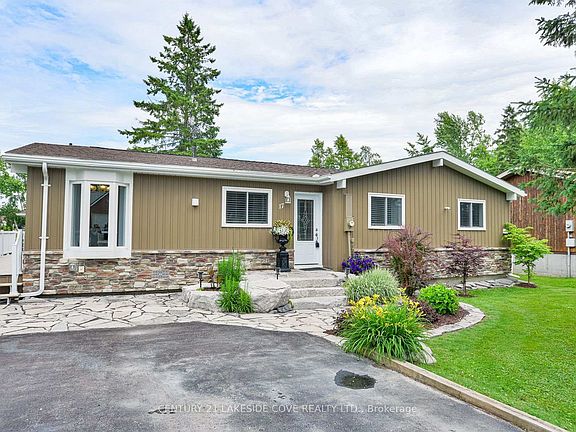 Beautiful Waterfront Bungalow is Waiting for You in Lagoon City Offering Access to Lake Simcoe & The Trent/Severn Waterways. Lagoon City is a Vibrant Active Community With Onsite Marina, Restaurants, Tennis & Pickleball Courts, Club House, Miles of Walking & Biking Trails and Private Lakefront Park with a Stunning Sandy Beach. This 2 Bedroom/2 Bathroom Updated Home is a Pleasure to Show. The Gourmet Chef Will Love This Sparkling Kitchen Boasting Sleek Grey Cabinetry, Granite Counters, Stainless Steel French Door Style Side by Side Fridge & Freezer. Enjoy Dining Area With Bay Window and Walkout to Wrap-Around Deck. Great Storage Space in Pantry. A Wall of Windows Overlooking The Water With Large Living Room is Ideal for Entertaining Family & Friends and Offers Bright Open Concept with Vaulted Ceiling & Cozy Fireplace. Spacious Primary Bedroom Has Ensuite and Walk-in Closet With Walkout To Waterfront Upgraded Duradeck/2021. Additional Guest Bedroom & Main Floor Laundry With Storage Space & Convenient Folding Counters. The Rear Yard is the Perfect Place to Sit Back, Relax & Enjoy All That The Surrounding Nature Has to Offer, Whether it be on the Expansive Wrap-Around Deck with Glass Panels Offering Endless Views of the Canal. Enjoy Mature Landscaping & Gardens with Many Upgrades, Windows & Sliding Doors 2019, Dining Room Bay Window 2019, Vinyl Siding 2019, Exterior Culture Stone 2019, Flagstone Walkway 2020, Duradeck 2021, Paved Driveway. Close to Many Good Golf Courses & Leash Free Dog Park and World Class Entertainment at Casino Rama.