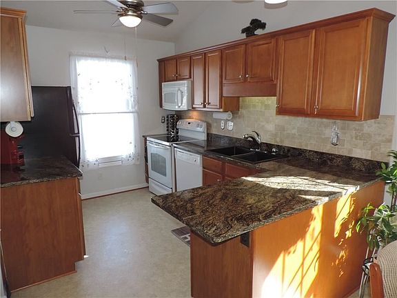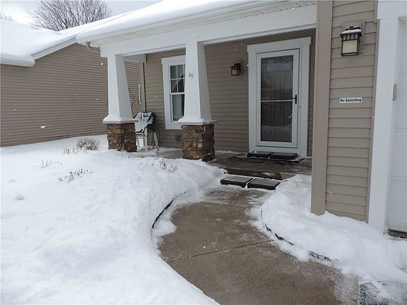 Great Ranch Townhome-55+ Community, Blt '09, Biggest Unit, 1187SF (Tax Records 1111 SqFt, New Build made bigger), Cath Ceil Kit/Din & Great Rm, Cinnamon Maple Cabinets, Large Lazy Susan, Pull Out Drawers, Earthtone Granite Cntrs, Black Silgranite Sink, Stone Travertine Tile Backsplash, All Appls Incl, W/D too, Brushed Nickle Lever Door Handles, Hallway & Great Rm w/New Carpeting, Sliding Glass Drs to 12x14 Deck w/Covered Gazebo Incl,Pretty Lndscpd Yard, Block Borders from Van Putte, HOA $165 Mnth, Ext. Maint, Snow Rem & Garbage, 1st Flr Laun, 2BD, 2 Full BA, Big Mst BD w/Cath Ceil, W/I Closet & Nice Size Mstr Bth, Big Vanity & Glass Shower Enclosure-Nice, Full Dry Bsmt, Power Chair to Bsmt, Firm Oak Railings on Both Sides, Hi-Eff Furn & C/A, Workbench & Wash Tub, Vinyl Sided, Go See.