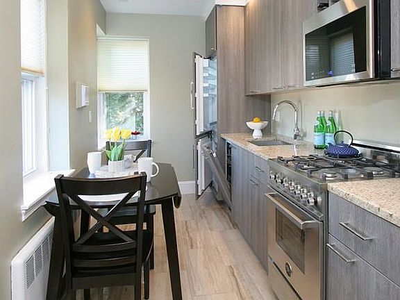 Bright and sunny fully renovated corner PH unit. European style kitchen includes Bosch refrigerator and dishwasher, Haier microwave oven and Bertazzoni gas stove, custom cabinets and quartz countertops. All new recessed lighting and custom fixtures in the bedroom. Refinished hardwood floors throughout the unit and new tile floor in the kitchen and bathroom.The unit also includes new washer & dryer, surround sound speaker system and built in TV's in both the LR and Bedroom. Two oversized closets inside the unit and deeded storage in the lower level. Located across from Marine Park and near bus lines to Copley and the Financial district walking distance to restaurants. Professional and well managed building. Low condo fee includes heat and hot-water.