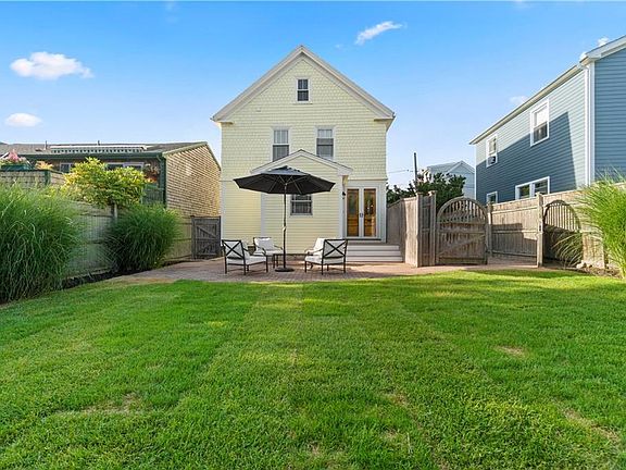 Meticulously renovated Newport home with private fenced back yard is an easy stroll to the waterfront, restaurants, parks, and yacht clubs. Completely restored to the studs in 2000 with new plumbing, electrical, full insulation, and masterfully plastered and painted interior, this sun filled home has been completely updated with new gourmet kitchen, new bathrooms, new roof (2010), new high efficiency Triangle Tube gas boiler (2011), new insulated sash windows, tech lighting, ceiling fans, and outdoor shower. Kitchen has 30 inch deep honed granite counter tops, Bertazzoni 5 burner stainless dual fuel range/oven, commercial grade stainless sink, and lots of storage. Large first floor bathroom is brightened through its arched window and has a claw foot tub/shower. The spacious living room connects with enclosed front porch entryway and a cozy built in reading corner. Second floor master bedroom with en suite bathroom has oversized tiled shower with dual shower heads. Two additional bedrooms, plus potential fourth bedroom and full bathroom allow for ample and comfortable living. 3 private tandem parking spaces, a full basement and walk up attic for storage. This home has an open, well balanced interior, plenty of natural light, and is in superb condition.