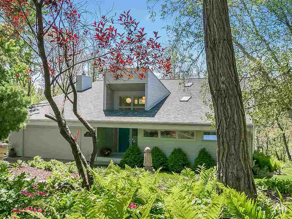 Minutes from downtown, 3-bdrm, 2-bth home w/ privacy, dramatic natural views from soaring interior. Well maintained, recently updated. Gleaming oak, white walls for art, vaulted ceilings, many windows. Main: MBR suite w/ balcony, vaulted ceiling; kitchen of maple, s steel, granite; dining overlooks 3-story Great Rm w/ cast-iron fireplace insert for cozy winter heat. Also on LL: 2 bdrms, bth, laundry, exercise rm, screened porch, patio, deck, landscaping w/ forest backdrop. Loft storage in 2-car garage.