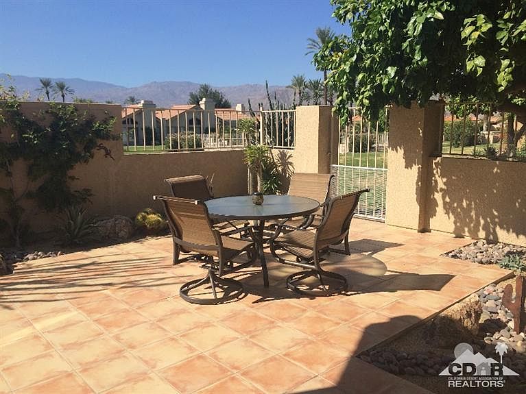 Calling all tennis players and anyone wanting a perfect 10 home! Everything has been done ~ just move-in. From the time you enter the courtyard, you feel right at home. The entry is spacious enough for a grand piano or for a large dining table. Lifetime warranty Milgard windows with 4 inch stacking blinds surround the living area looking out to the mountains. The remodeled fireplace and wired music make this the perfect room for entertaining or relaxing. The kitchen has been remodeled to take advantage of all spaces. Gaze to the mountains from the master bedroom or watch the car lights drive up the mountain at night. The guest room is being used as a TV room with a Murphy bed, but it can be anything you want. The extended tiled patio is large enough for dining and entertaining at night with outdoor landscape lighting. If you need extra storage, the large garage has plenty of custom built storage units. An on-site tennis pro is available during season and a new fitness center!