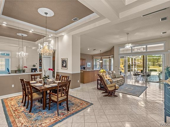 Enjoy the Savings on this Beautiful Home! If gazing at endless blue skies makes you happy, you have found your home within the amenity rich community of Terra Vista in Citrus Hills! And, you will have your privacy as well. Enter into your beautiful CAREFREE Lantana Style Home that is a Touch of Class! Enjoy the mature Trees & Palms Trees on the property. Walk up the extra-long driveway & enter into a spacious home accented with soft colors & custom-made Cornices throughout. Plantation Shutters and Wood Blinds adorn the home. Kitchen has new LG APPLIANCES (2022). The Garage has a brand-new EPOXY GARAGE FLOOR (2022) with just the right amount of sparkle! Home has new LENNOX HEAT PUMP & AIR HANDLER SYSTEM in 2016 with new DUCT SYSTEM (old ducts in attic were replaced). Home has a new NEST THERMOSTAT (2020), UV LIGHT to the AC (2019). A new WATER HEATER was installed in 2015, as were the new WASHER & DRYER. Entire Interior of the home was Professionally Painted in 2016. New Lighting Fixtures, Chair Rails, Tray Ceilings, Fans & built-in Wall Units in the Great Room & Office makes for a relaxing, elegant home. Dining Room has BEVELED MIRRORS on two walls creating the illusion of a larger home. Walking on Tile on the diagonal, and high-quality Berber carpeting is a joy. The MIRRORED WALLS reflect the outside view inward. The Master Bath has a working jacuzzi tub & a HUGE Shower. Enjoy the beautiful spacious Lanai with easy to clean tile that goes out to your 20 x 18 ft Screen Enclosure that has an IN THE GROUND electrical unit for a HOT TUB. The backyard is a large DRA that's private & beautiful to view. Let's not forget, the Garage is large enough for two cars & a Golf Cart! The neighborhood is friendly and quiet. Enjoy making friends at the Tiki Bar, cycling, playing pickleball, golf, tennis, bocci, eating at the three restaurants, walking the 8 miles in the community, taking your doggie to the dog park, a workout at the fitness center, the spa, the many events, & much more with your Social Membership at Citrus Hills!