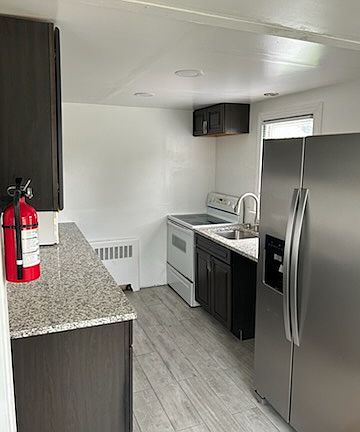 Upstairs apartment Unit B. Two bedroom, one bathroom. Updated kitchen with newer cabinets, refrigerator, granite counter tops and stainless steel sink. Two large storage closets Balcony Located in a quiet development and in walking distance to local shopping and restaurants. Owner is responsible for water/sewer, lawn care Tenant is responsible for electric/shared oil heat. No pets No smoking