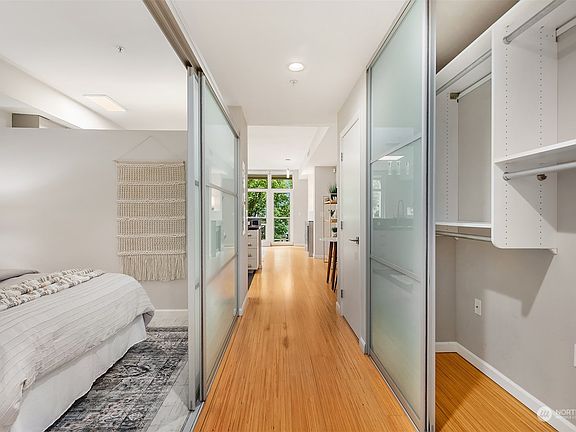 Welcome to 17 West Mercer Street, Unit 109, a modern 1-bedroom, 1-bathroom condo in the heart of Seattle. This 713-square-foot urban retreat features floor-to-ceiling windows, carpet and hardwood floors, a cozy fireplace, and a well-appointed kitchen. Enjoy the private balcony, ample storage with built-ins, and parking directly in front of the door. watch New Years fireworks from the rooftop deck, this pet-friendly building has it all. Plus, it's just a stone's throw from the Climate Pledge Arena, perfect for sports and entertainment enthusiasts. Don't miss out on this unrivaled Seattle gem, located in a secure building with no rental cap! *All offers will be considered*
