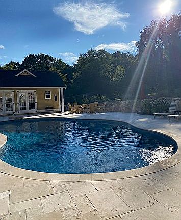 Beautifully landscaped yard with new salt water pool, patio, cabana, greenhouse, shed and organic vegetable garden