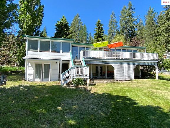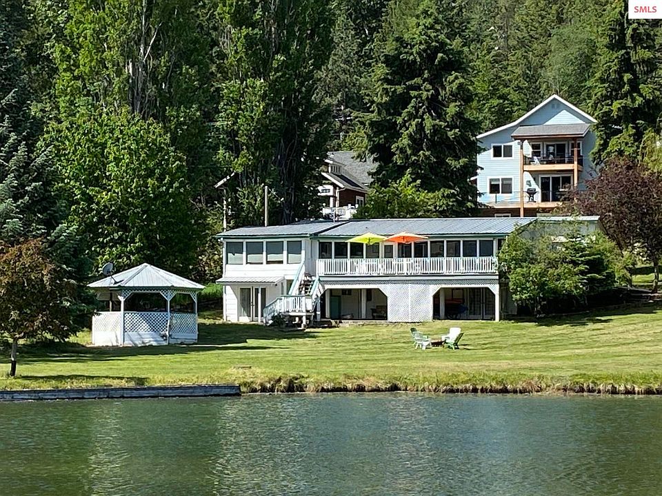 Sourdough Point waterfront home in primo location! Level lawn to lake next to community island for ultimate fun and recreation. 3 bedroom, 3 bathroom with unobstructed views to lake and island. Floating dock, gazebo with hot tub, Sourdough water plus lake irrigation system. Island park amenities include gorgeous sand pebble and rock beaches, tennis court, boat launch, beautiful forested pathways. Access is a beautiful drive along the lake from Sandpoint, paved nearly to the driveway. Lot lines extend to lake high water, thereby increasing useable space. This property has been enjoyed for many years by current owners. Home could be remodeled, or take down and build new in this amazing location.