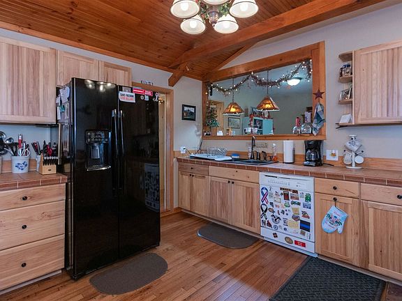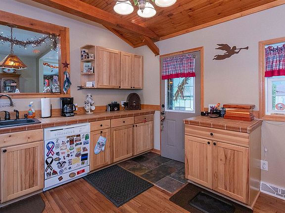 This home boasts privacy with close proximity to shopping & city amenities. Nestled off the road with a large landscaped yard, this warm home offers 2-4 bedrooms, plenty of room for entertaining family and friends. Large living room areas, hard wood floors throughout, dining room, plenty of closet storage, two bedrooms and spacious full bathroom. Additional great room with wood burning fireplace, built-ins & vaulted ceilings, could be used as a bedroom or as-is, a fantastic entertaining area with custom dry bar. Walk-up attic is also partially finished, offering an additional fourth bedroom if needed. Enjoy the quiet outdoors on the large deck, two outbuildings and two-story garage- second story storage or work-out room. Unique property with endless possibilities. Roof replaced 2015.