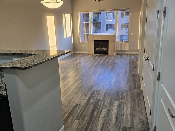 Perfectly located just north of downtown Phoenix on Central Ave. at Encanto Blvd. with the light rail station directly in front of the complex. This unit features laminate wood floors and tile, washer and dryer in unit, gas stove and fireplace and recently renovated shower. Unit is on the fourth floor, with balcony overlooking pool, hot tub. Clubhouse features exercise room, sauna and showers. Ceiling fans in living room and bedroom. Parking is available in an underground garage. (1 designated space) Secured building and garage entry. Water and trash is included in rent. Owner/landlord lives on site. One year lease. Water/trash included in monthly rent. Renter responsible for gas and electric. Underground secured parking (one designated space). $1695. security deposit and $250. non-refundable cleaning deposit required at signing. No smoking. No pets.