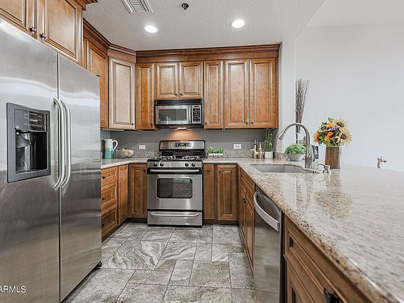 6th Floor Penthouse condo in downtown Phoenix off Central in Tapestry on Central. This condo is completely remodeled & updated w/new paint. Upgraded w/taller kitchen cabinets & extended granite counters over other units & includes stainless appliances, built-in pantry & storage. The great room has a gas fireplace & soaring cathedral ceilings w/beautiful views. 2 walk-out patios w/amazing views. Guest bedroom & guest bathroom are downstairs & the master & adjoining office/den are upstairs & overlook the great room. Double person bathtub in primary bathroom & separate shower. Custom closets to maximize storage space. Tile and wood & only (new) carpet is on the stairs. Condo comes w/2 assigned parking spaces in secured garage. Complex has pool, Jacuzzi, BBQs, gym & movie theater. Good credit