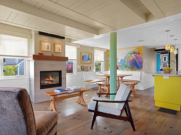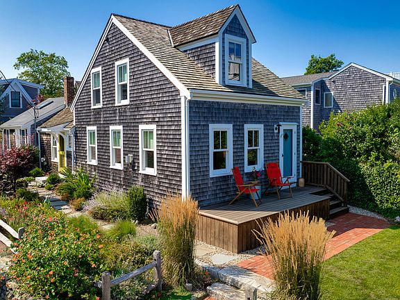 This is one of those very special properties in Provincetown's west end - a quintessential 1800's half Cape with wood shingle roof, which has been completely remodeled, with a nod to its history and thoughtful design for today's high-quality standards. Perched upon West Vine St., the home offers views across Provincetown Bay to Long Point. Featured on the cover of Home Remodeling Magazine, the article inside titled ''Paradise Found'' certainly captures the essence of this pristine home. Custom wainscoting; gas fireplace with reclaimed wood mantle; award winning storage compartments; hand painted wall mural by local artist Liz Carney; artisan built-in banquette with floating benches; concrete countertops using Cape Cod sand; exposed wood from the original 1828 house; and creative use of color throughout set this home apart. The entry level is well laid out, with an open kitchen, dining, living area and separate first floor bathroom and bedroom, with vaulted plank wood ceiling and its own exterior entry. The stairway to the 2nd floor, with its stainless-steel cabling and two windows with views of the Pilgrim's Monument and surrounding gardens, is another thoughtful design element. The primary bedroom suite with views down West Vine and colorful sunrises will make waking up here pure joy. No need to shop for bedroom furniture. Cabinetry, platform king bed, storage drawers, bookcase and nightstands are all custom made and built-in to make ideal use of the space. Likewise, the primary bath, with its own wonderful views to the Moors, is well appointed and conveniently includes a concealed washer and dryer. Thoughtful design extends to the outside as well! A very private bluestone patio; custom built shed; outside shower; perfect front deck vantage point to view streetscape and bay below; professionally created gardens; irrigation system and a perfect patch of lawn will provide endless hours of outdoor living. Two parking spaces, Sonos sound system, weekly rental option and pets for owners provide a few additional perks really making this property "Paradise Found".