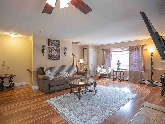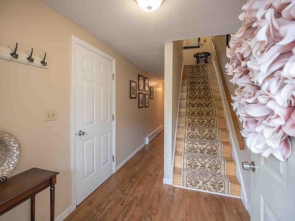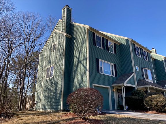 Welcome to Bradford Woods, where location, amenities, and spacious living come together! This end-unit townhouse with garage has plenty of finished space to suit most needs, and is move-in ready. You get a roomy living/dining area featuring a wood fireplace focal point, and the extra window on the side helps bring in plenty of light. The kitchen features new cabinets, flooring, and appliances, so you can unpack your skillet and start sharpening your knives and your culinary skills the day you move in; and the bright breakfast nook looks out through a slider to a deck surrounded by trees for privacy. Upstairs the primary bedroom has double closets and its own beautifully updated full bath, and the second bedroom has a surprisingly large closet. Need more space? The basement room is ready for toys, TVs, a music or yoga studio, a guest room, or just a place to get away from domestic bustle. For convenience you have a half bath on the main floor and laundry on the second. I've mentioned a few of the updates already, but they also include a newer hot water heater, and new plumbing and updates in the shared full bath. With the garage you won't have to scrape and shovel your car out from under the snow anymore! Bradford Woods offers two pools and clubhouses, tennis courts, a playground, and woods, ponds, trails, and open space--none of which YOU have to maintain--and the location near the Bedford line and easy access to the Everett Turnpike make this the perfect home.