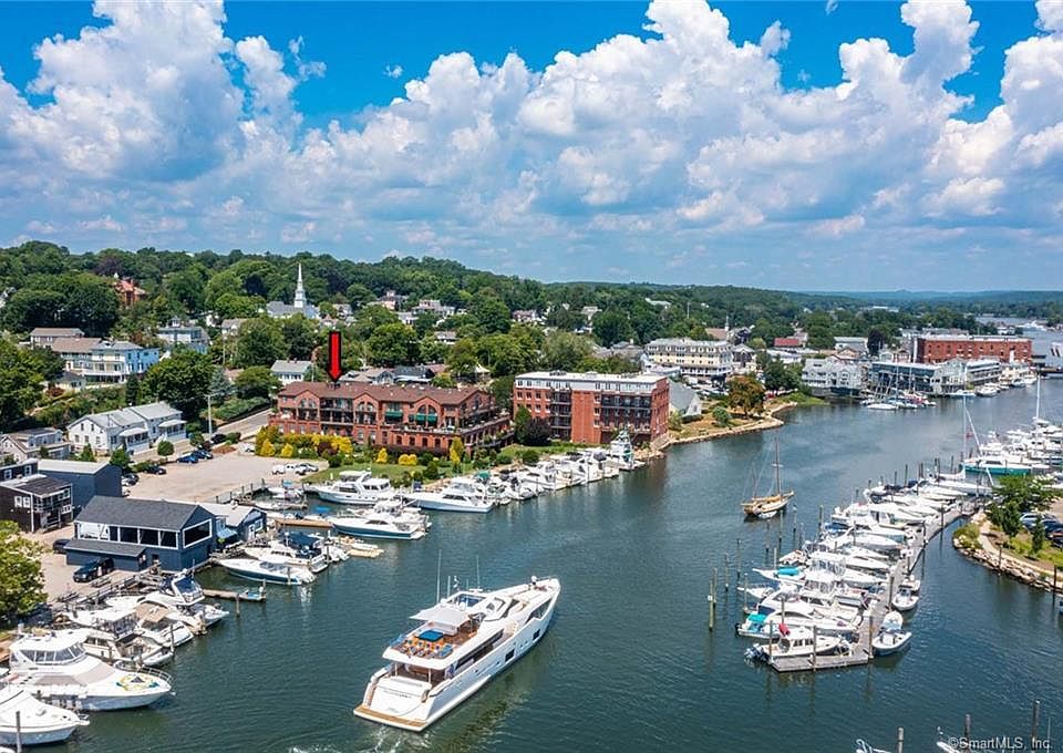 Beautifully renovated three level Randall's Wharf 2 bedroom, 2.5 bath condominium in the heart of Historic Downtown Mystic! 2,025 square feet of light, bright living space, including 2 heated & covered garage parking spaces! Spacious first floor living area has brushed oak flooring, electric fireplace and wine cooler. There is a powder room on this level. Well appointed custom eat-in kitchen has shaker cabinetry, quartz counter tops and peninsular eating area. Two separate oversized en-suite bedrooms on the second floor with room for relaxing seating areas. Both bedrooms have wire brushed oak flooring. Spacious third floor bedroom can also serve as a private office. Interior offers plentiful storage. Propane heat, Central A/C with auxiliary split system on the third floor. Pets allowed with restrictions. This beautiful condominium puts you right in the midst of Downtown Mystic's busy restaurant, unique shops and boating scene. Move right in to this beautiful condo and live a dream!
