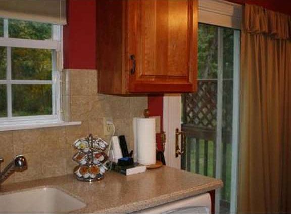 Well maintained 2 bedroom, one and a half bath condominium located at beautiful Waters Edge condominium complex. Two good sized bedrooms, large living room and updated kitchen and baths. Features include kitchen appliances, laundry room, central air, and one car garage with opener. Large windows provide lots of light. Attention to details throughout this well appointed unit.. Convenient to major highways. Private rear deck backs to woods and offers much privacy. Why rent when you can own this wonderful condominium.