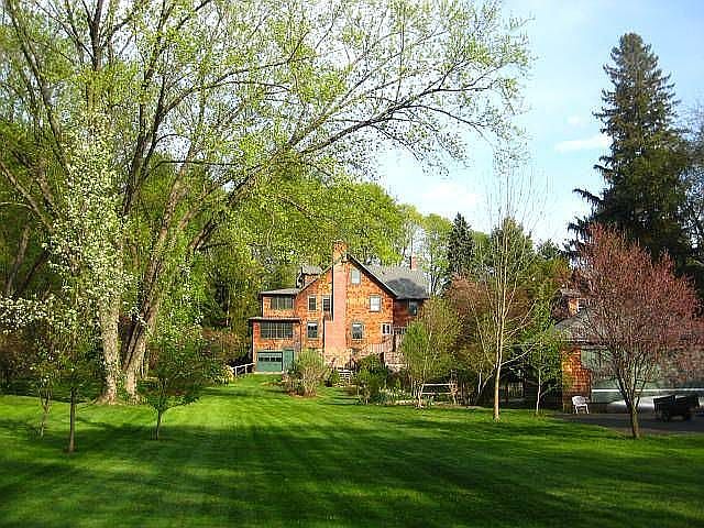 Listing agent: Charlie Kaylor, Call 860-392-9280 for information. PRICE JUST REDUCED! Not Your Typical Cookie Cutter Home! If you are not contractually obligated with another agent, buy this home through Charlie and save money! Visit CTDreamTeam.com for 60 photos! At the turn of the century, Noah Wallace built this impressive home for his family. Masterfully restored over the years, this home has blended in harmony today’s conveniences and luxury with yesterday’s history, elegance and charm. It offers the best of all worlds- gracious entertaining space, relaxed comfort for leisure time and luxurious privacy. The park-like setting boasts verdant landscaping , a large selection of colorful perennials, stone walkways, a vegetable garden and fruit trees. The breathtaking 1.6 ace lot abuts a beautiful pond (partial ownership) and The Country Club of Farmington’s 18 hole golf course. Classic cedar shakes, a picket fence and new roof and driveway combine to create a picturesque curb appeal. Discover quality inside this historic home laced with rich woodwork, high ceilings, crown molding, period 5 panel doors and distinguished hardwood floors. The elegant dining room features an exquisite oversized fireplace, antique sconces, a built-in china closet, classic French doors and ample seating for 12. Thoughtful design went into the French country kitchen that boasts a handsome selection of paneled ivory cabinetry, cork flooring, an African mahogany topped peninsula, granite counters and quality appliances. The oversized, walk-in pantry adds ample storage space. The sun will splash into your breakfast in the adjoining dining area that features a wood burning (or coal) stove and glass sliders that lead to the spacious 2-tiered, wisteria laced, deck that is wired and built to support a hot tub. This historic treasure boasts a 400 square foot enclosed sun porch (not included in the total square