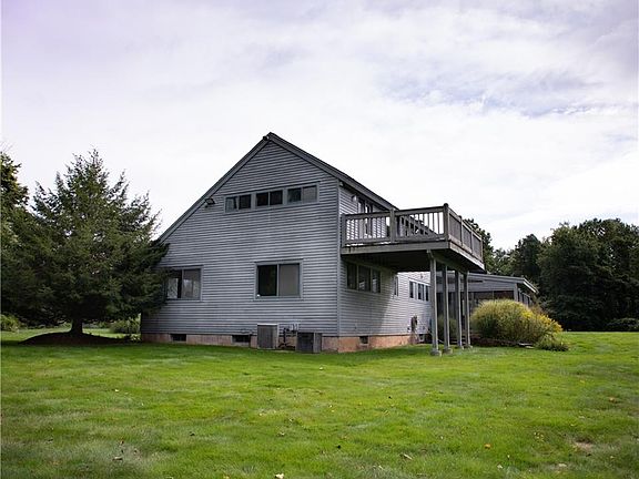 Opportunity knocks!!! Have you ever met anyone who says they regret not buying a certain property when it was available? Don't let that be you. This is an opportunity to have the house of your dreams on over 8.23 private, picturesque acres, and still be within a few miles of beautiful, active West Hartford. The existing house is built in the contemporary style. It has an open feel on the main floor with the kitchen open to the living room and dining room. Two of the three/four bedrooms are on the first floor. They share a full bath. There is a sun room on the back of the house overlooking the large yard and garden. It is fully heated and air conditioned. The house features two separate upstairs areas. The primary bedroom suite is on one side of the house. It features a deck accessible via a slider. The Primary bath has a very large shower, whirlpool tub and lots of storage. It also features a large walk-in closet. On the other side of the house on the upper level is another bedroom with ensuite bath. The fun part of this property is the fact that there is plenty of land to do with as you please. You could build a new house while living in the existing, you could add amenities like a pool or tennis/basketball courts or a putting green. The choice is yours. Subdividing is a possibility worth investigating too. Come and see this property and use your imagination! This land was approved for building 18 condos by the Town. The approvals transfer with the sale