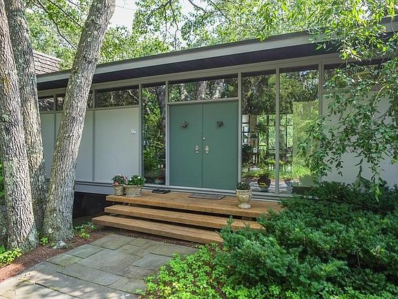 Dramatic Mid Century Modern Contemporary spectacularly sited on nearly two acres with distant views. This unique contemporary home features 4 BR's, 4 Bath's and an open concept living area with stone fireplace separating the dining and living areas with a wall's of glass overlooking stunning gardens, in ground gunite pool with waterfall & pool house. Flexible layout with 2 potential masters on either end of house. An addition added in 1994 includes a 2 car garage, an art studio, Master BR suite with deck off of it, dressing room, office and full bath. Original side of house features a 2nd master with deck and hot tub off of it, a study and 2 additional BR's and full bath on lower level. Spacious white kitchen with center island and lots of cabinetry opens to bluestone patio for al fresco dining. Ideally located near route 30 and MA Pike for easy commuting. Don't miss this special home! 3 HR open house Sunday 10/1.
