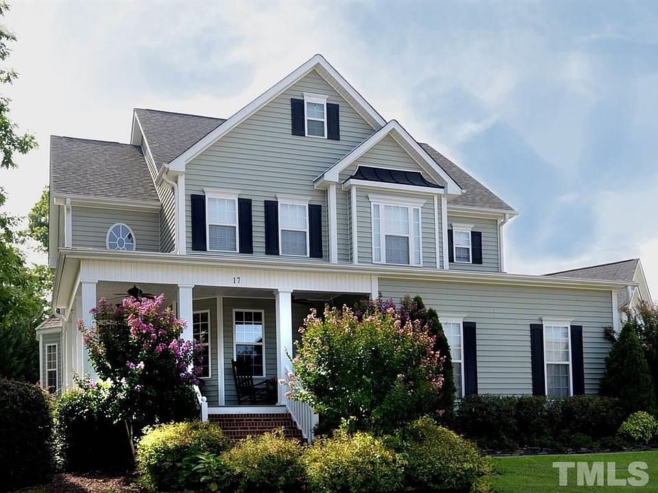 Stunning Parade of Homes 4 Bedroom Beauty in Mill Creek West! Gorgeous Southern Charm covered front porch, romantic master bdrm w/fireplace, third floor finished bonus-could be 5th bedroom, granite kitchen with new stainless appliances, custom hardwoods through downstairs, sunlit family room, front formal living room could be your new office, corner lot, private wooded backyard. Too many upgrades to list! Flowers Plantation walking trails, close to Harris Teeter shopping. This is a MUST SEE!