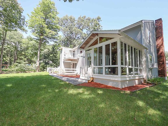 WOW, look what we found ... Gleaming hardwood floors throughout the home under the original carpeting. If you have been waiting to call the town of Bedford your hometown your wait is over! Convenient, Quiet, and Serene comes to mind when describing this home. Situated on a little over 1.5 acres, this colonial shines amid the backdrop of mature hardwoods and a mix of nicely apportioned annuals and perennials. With gleaming hardwood floors throughout, the main floor features a full applianced kitchen with adjoining eat in area and family room. For the larger get-togethers, a separate dining room and living room with its wood burning fireplace are sure to please for those cold New Hampshire evenings. Perhaps you'll want to enjoy your morning coffee and take in the views relaxing in the bonus sunroom overlooking the backyard. Second floor boast of large potential in-law en-suite (or home office, game room, you name it!) with its nearly 22' x 34' living space, gas fireplace, and attached bathroom. For ultra convenience an elevator makes access to the main floor possible for those who may have mobility issues. Room also features a large balcony for nature viewing. Second floor also has two additional bathrooms and bedrooms with abundant natural lighting and awesome sightlines of the property. This is a must see to experience all this home has to offer. Welcome Home!