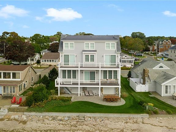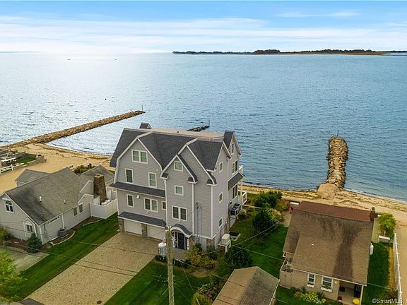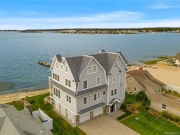 This amazing direct waterfront home w/private association beach on the CT Shoreline invites you to come play all day or relax by the sea shore. Brand new build in 2017, this home features an open floor plan with panoramic views from almost every room. Enjoy your open gourmet kitchen w/upscale appliances, stone countertops, detailed tiled back splash and an oversized island. The kitchen opens directly into a large dining and living room with beautifully trimmed coffered ceilings. Capture the breathtaking views through a wall of hurricane rated doors and windows or from the two exterior decks. Ride the homes elevator up to the third floor where you will find three bedrooms and 2 full bath, including a master suite with big soaking tub that overlooks the sound. Continue on to the unfinished top floor which offers plenty of extra storage. Home also features hardwood floors throughout, propane fireplace, security system, irrigation system, whole house generator and 2 car oversized garage with plenty of space for guest parking in the driveway. Close to schools, shops, restaurants & marinas. Also easy commute to Route 9 or I-95.