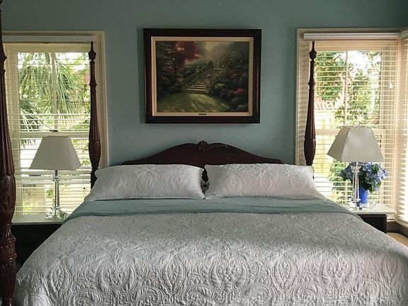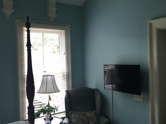 Our home is located in the heart of Charleston's Historic District on a small walking street. Located one and half blocks from King and Market streets. Walking distance to everything Charleston has to offer; restaurants, The Market, numerous parks, shopping, theaters and a major super market. Park your car on the driveway and forget about it-you will not need it. Upstairs our home has two master suites with private bathrooms including a Jacuzzi tub in each one. The master bedroom has a mahogany 18th century king Rice Bed with a vaulted beam ceiling. The second bedroom has a queen poster bed. Both bedrooms have large windows to allow natural sunlight, a sitting chair, desk or make up table, and wide screen TV's. Linens and towels are of the highest quality to provide you with a luxury experience. There is a washer and dryer off the hallway. The kitchen is fully stocked and offers small appliances, cooking utensils, pots and pans, glasses, flatware and crystal glasses. The state of the art kitchen allows one to cook a meal as if you were in your home. There is a 1/2 bath on the first floor. Enjoy eating in the quaint dining room with mahogany French doors that opens to a small garden. The living room has a gas fireplace, comfortable seating for reading or watching your favorite programs on a wide screen TV. A small writing desk is available to use your laptop computer and the internet. French doors open from the living room and open to an enclosed private patio where you can relax, enjoy a cup of coffee or a full meal. A gas grill is located on the patio.