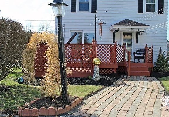 Located on a corner lot of a low traffic street, U shaped street with meticulously groomed grounds and fascinating gardens you'll find this lovingly maintained Traditional style home that's been well cared over the last 49 years by the same family with many important updates, special features and a very comfortable floor plan that includes a birch cabinets kitchen, Corian counter tops and an island overlooking the dining room with a slider that opens on to the deck. The fire-placed living room is also open to the dining room and has a slider that leads to the 3 season porch that has made a great little office for many years. Hard wood floors, natural woodwork, replacement windows, newer roof, updated electric, plumbing and heating are already done for you. If you're a gardener or just appreciate a nicely landscaped property, you will want to see all the special plantings, perennials, unique flowering vines and bushes that surround the brick walkways that meander through the yard.