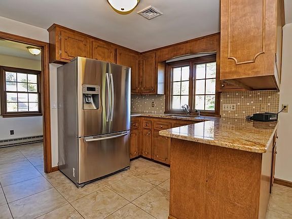 Immaculately maintained Split Entry home sits on a flat corner lot in a great neighborhood. Buyers will appreciate this nicely updated home with Central Air. There is a spacious Kitchen with updated tile flooring, stainless appliances, granite counters & plenty of cabinets. The Living Room has a pretty bow window and a fireplace to enjoy on chilly days. There is a Home Office located directly off the Kitchen with its own entrance. The main level offers 2 ample Bedrooms with nice closets and a spacious full Bathroom with tile floor. The finished lower level has nice Family Room with a large stone fireplace and a 2nd full Bathroom with tiled shower stall and newer vanity. The unfinished area of the lower level has laundry and utility connections and plenty of storage space. The 1 car garage and large driveway provide ample parking. The exterior has new vinyl siding! There are two heating options... newer FHA by propane Or the electric BB heat still intact. Awesome commuting location!